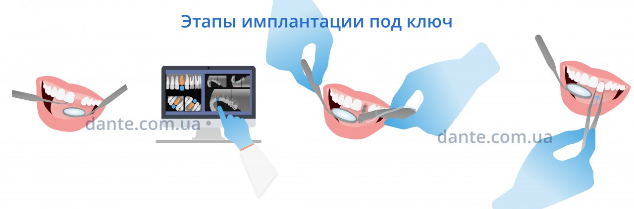 В целом, имплантация зуба включает пять основных этапов: