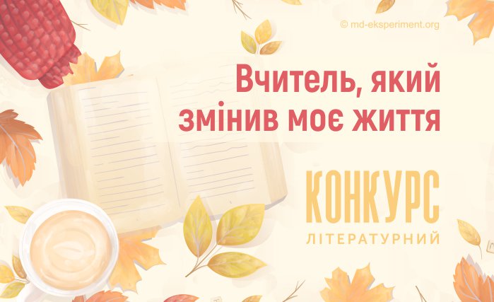 - Чекайте результатів. Кращі твори опублікуємо на порталі Експеримент на сторінці: https://md-eksperiment.org/tag/vchitel-yakij-zminiv-moye-zhittya.