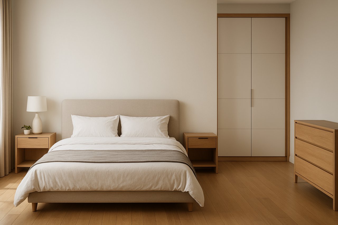 Починати варто з габаритів кімнати та сценаріїв користування. Для компактних площ підійдуть ліжка з підйомним механізмом і шафи-купе з дзеркалами, що візуально збільшують простір. Для великих кімнат — модульні системи з комодами та тумбами однієї колекції. Важливі матеріали: МДФ із якісним ПВХ-покриттям, ламіноване ДСП високої щільності, фурнітура з доводчиками і стійкі до подряпин фасади.