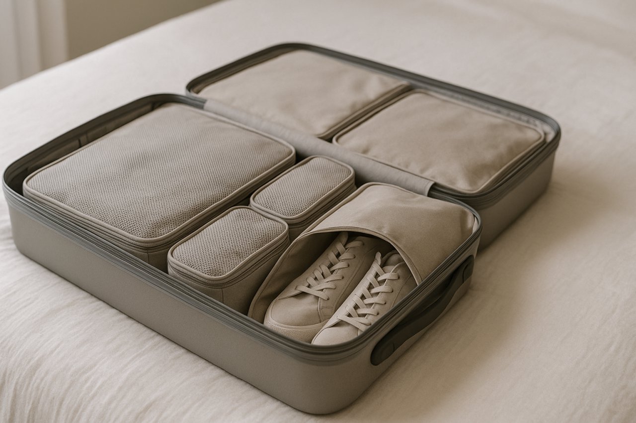 Если нужно организовать не только шкаф, но и чемодан, посмотрите на дорожные органайзеры — они поддерживают порядок в поездках и при переезде.