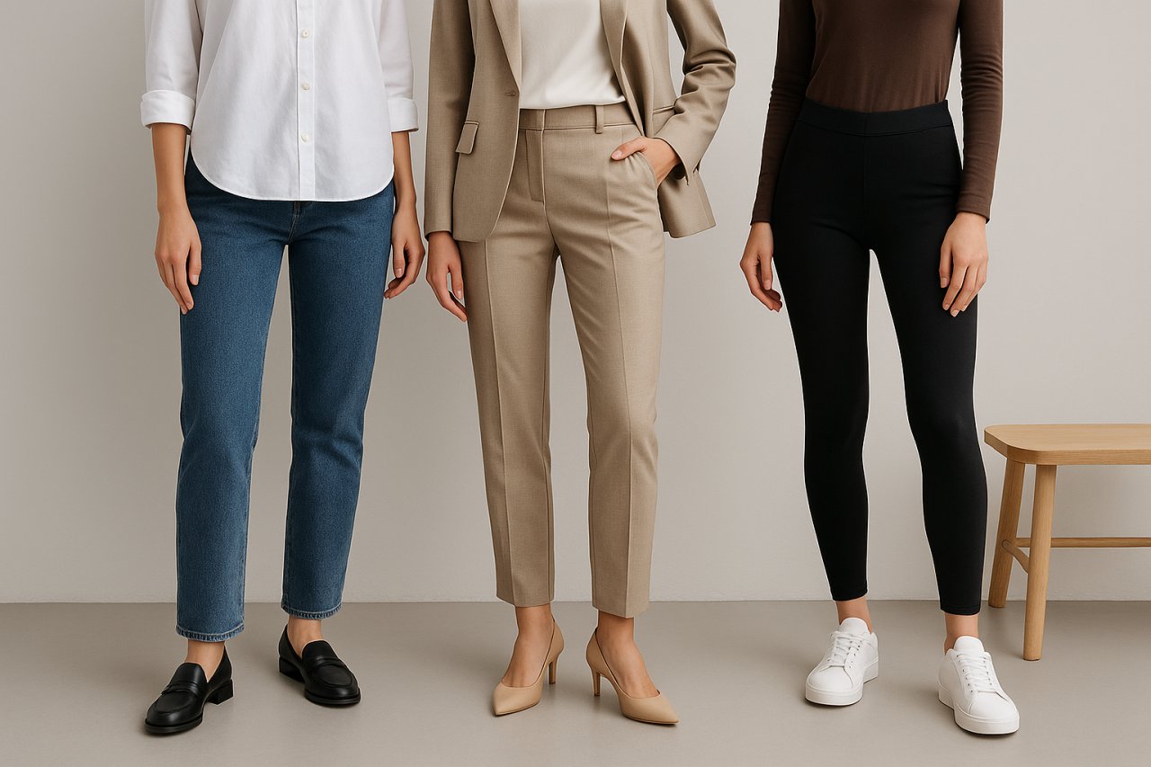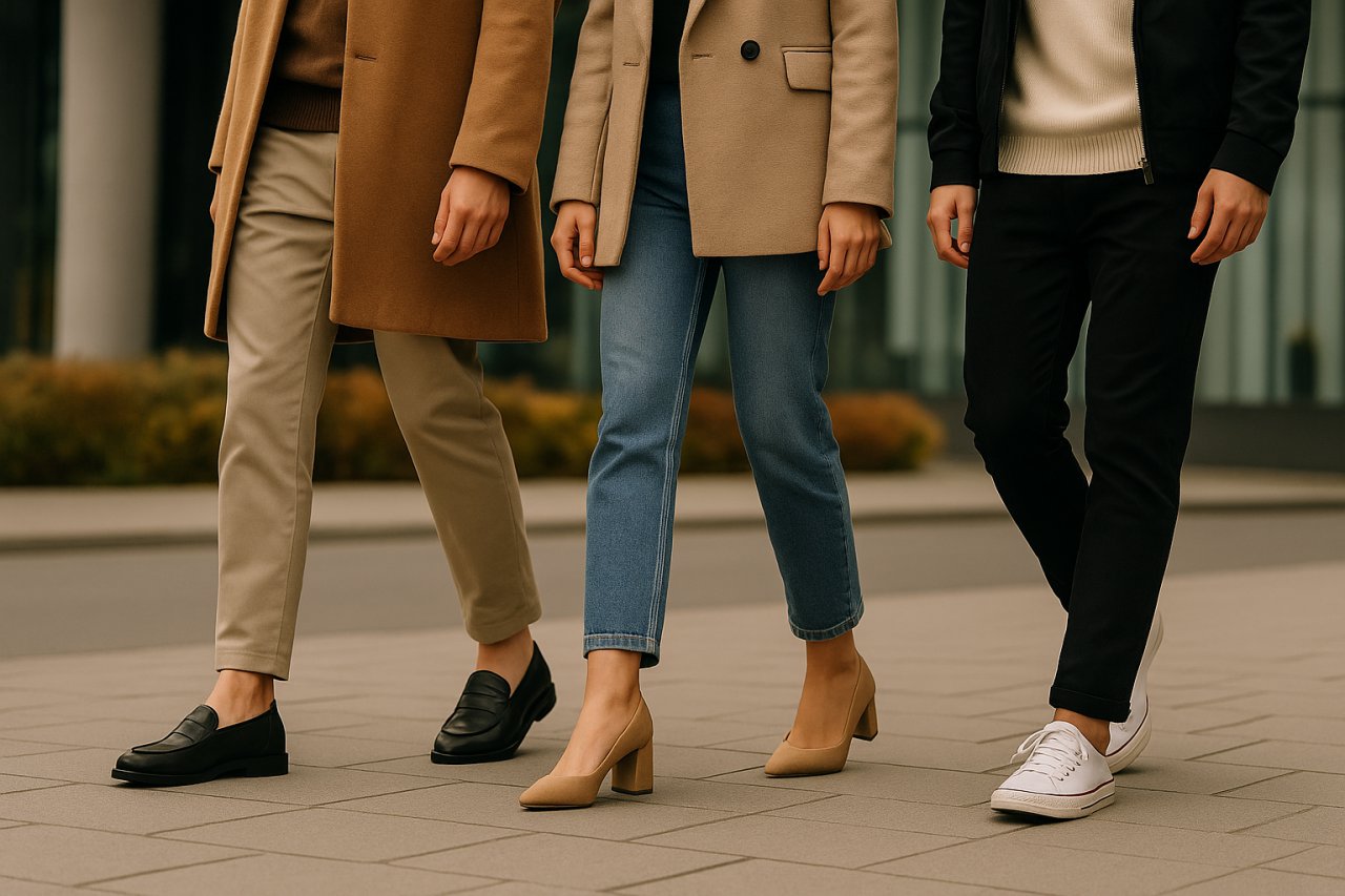 Добре підібрана пара взуття "збирає" образ, вирівнює пропорції та задає настрій — від невимушеного кежуалу до стриманої класики й функціонального спорту. Почніть із самоаналізу: які силуети носите найчастіше (прямі джинси, спідниці міді, костюм, легінси), які кольори домінують у гардеробі, де саме вам потрібен комфорт (щоденні маршрути, офіс, вихідні, тренування). Далі — робота з матеріалом і відтінками: гладка шкіра завжди доречна у класичних і smart-casual образах, замша пом'якшує трикотаж і твід, текстиль і сітка підтримують спорт і athleisure — стиль одягу, який поєднує спортивний і повсякденний комфорт.