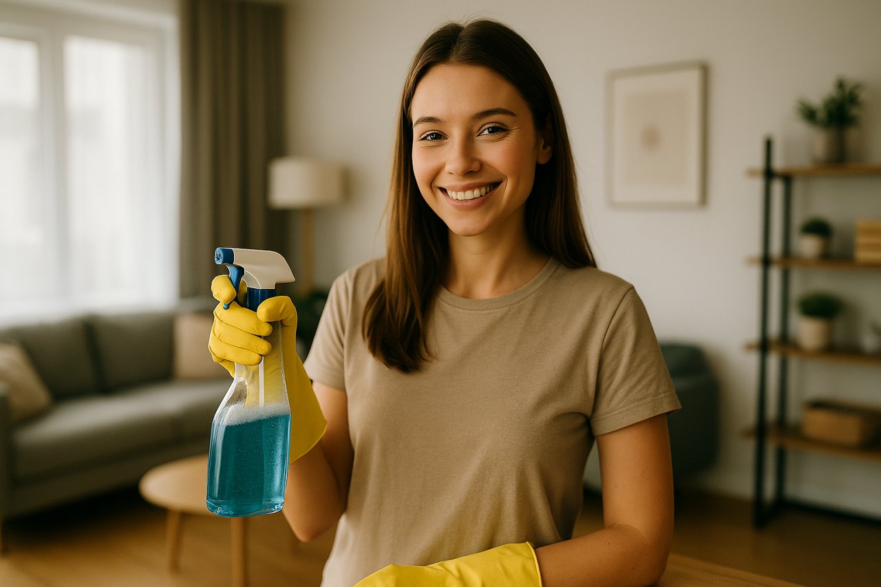 Для прибирання базою буде універсальний спрей, окремі засоби для ванни/кухні/скла, мікрофібра різних кольорів для зон, губки та щітка для швів, швабра з двома змінними насадками.