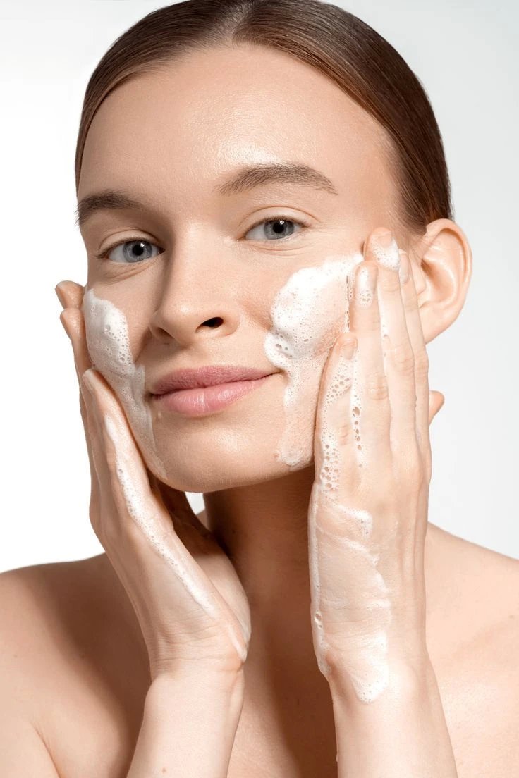 - Дбайливе очищення зберігає гідроліпідний бар'єр і не провокує додаткового стресу. Використовуйте м'які гелі або молочко без спирту та кислот, при цьому мийте обличчя помірно теплою водою, і промокніть (не теріть!) рушником. Від скрабів із абразивними частинками варто відмовитися взагалі.