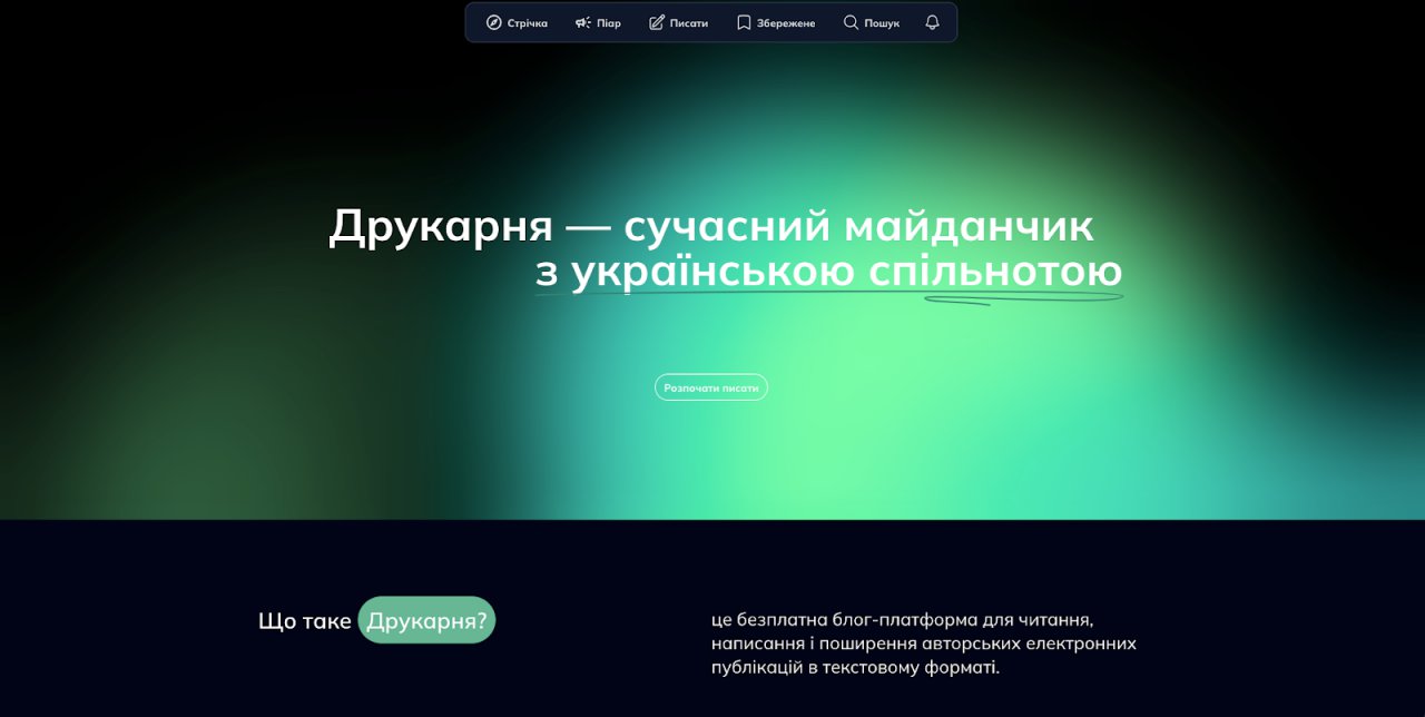 Саме в такому контексті виникає проєкт Друкарня — українська блог-платформа, призначена для створення, читання, обговорення і просування авторських блогів українською мовою.