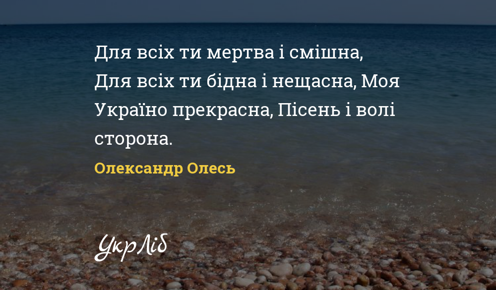 Для всіх ти мертва і смішна, Для всіх ти бідна і нещасна, Моя Україно прекрасна, Пісень і волі сторона.