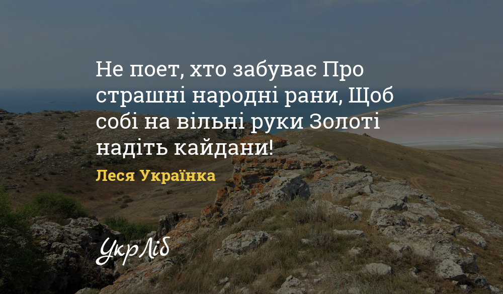 Не поет, хто забуває Про страшні народні рани, Щоб собі на вільні руки Золоті надіть кайдани!