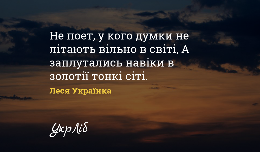 Не поет, у кого думки не літають вільно в світі, А заплутались навіки в золотії тонкі сіті.