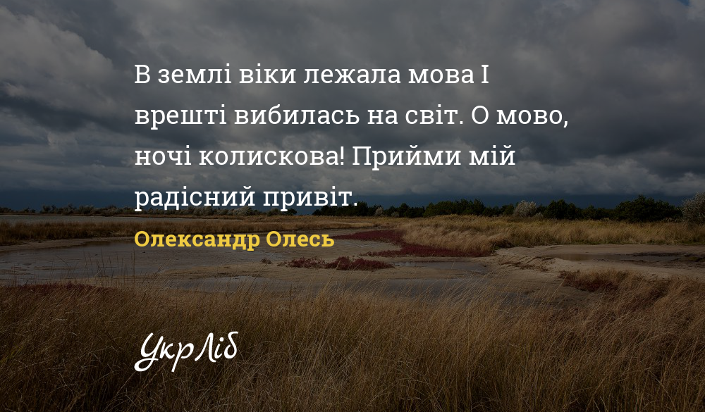 В землі віки лежала мова І врешті вибилась на світ. О мово, ночі колискова! Прийми мій радісний привіт.