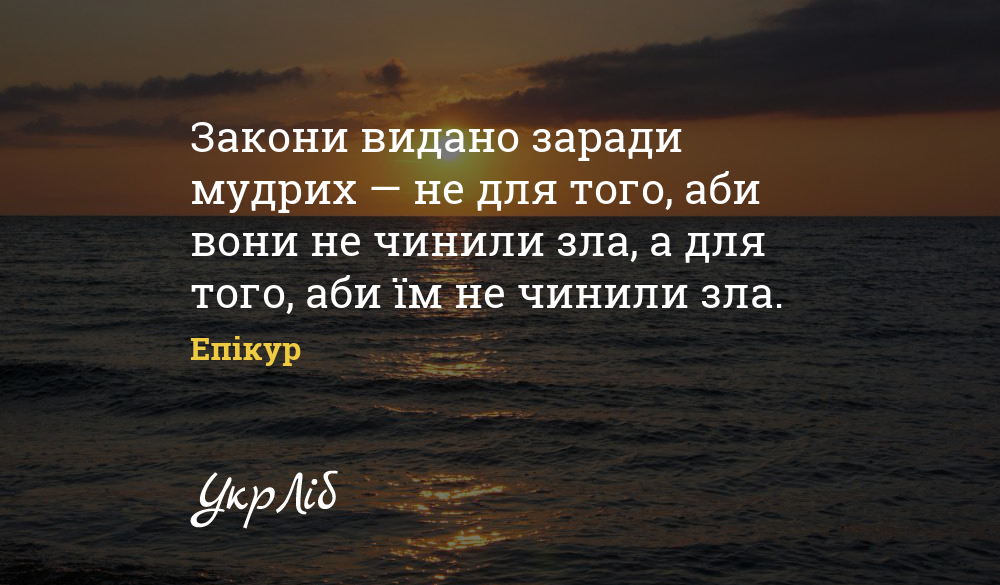 Закони видано заради мудрих — не для того, аби вони не чинили зла, а для того, аби їм не чинили зла.