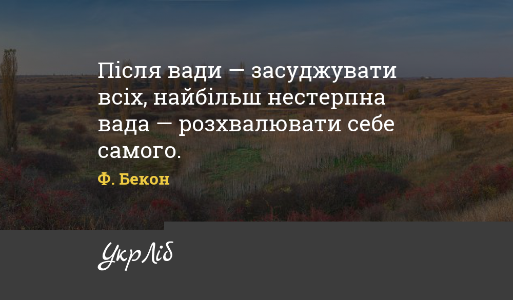 Після вади — засуджувати всіх, найбільш нестерпна вада — розхвалювати себе самого.