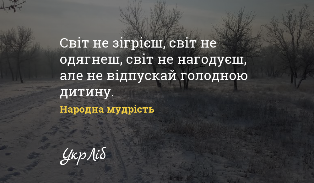 Світ не зігрієш, світ не одягнеш, світ не нагодуєш, але не відпускай голодною дитину.
