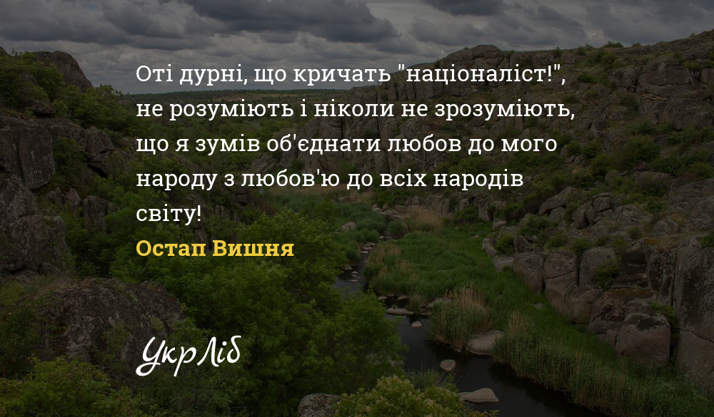 Оті дурні, що кричать "націоналіст!", не розуміють і ніколи не зрозуміють, що я зумів об'єднати любов до мого народу з любов'ю до всіх народів світу!