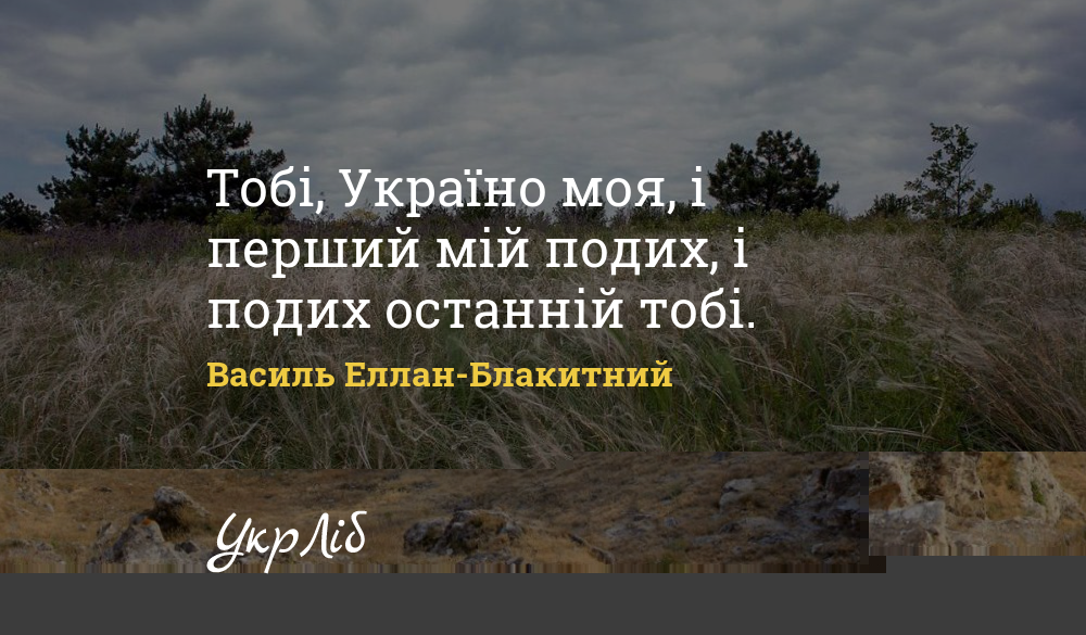 Тобі, Україно моя, і перший мій подих, і подих останній тобі.