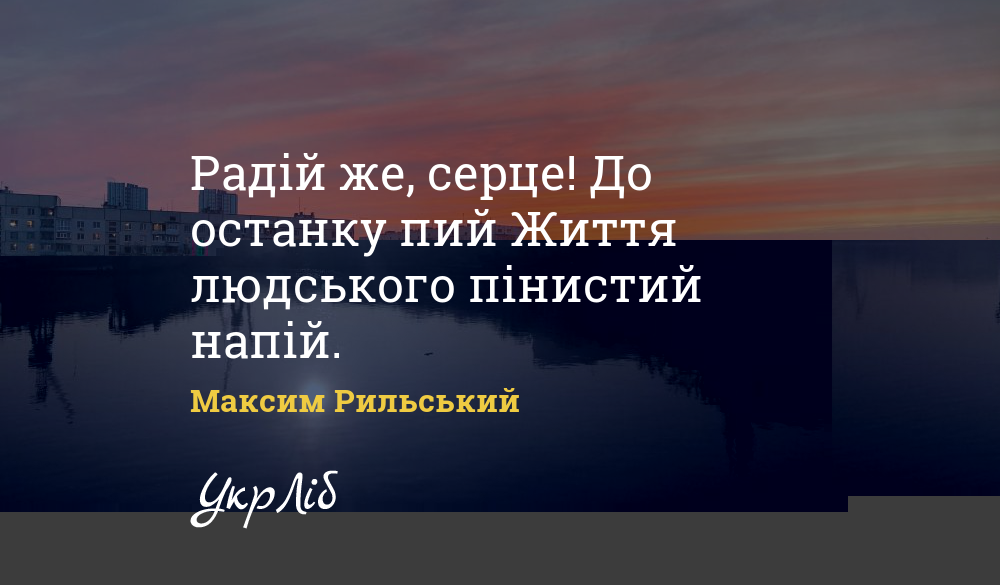 Радій же, серце! До останку пий Життя людського пінистий напій.