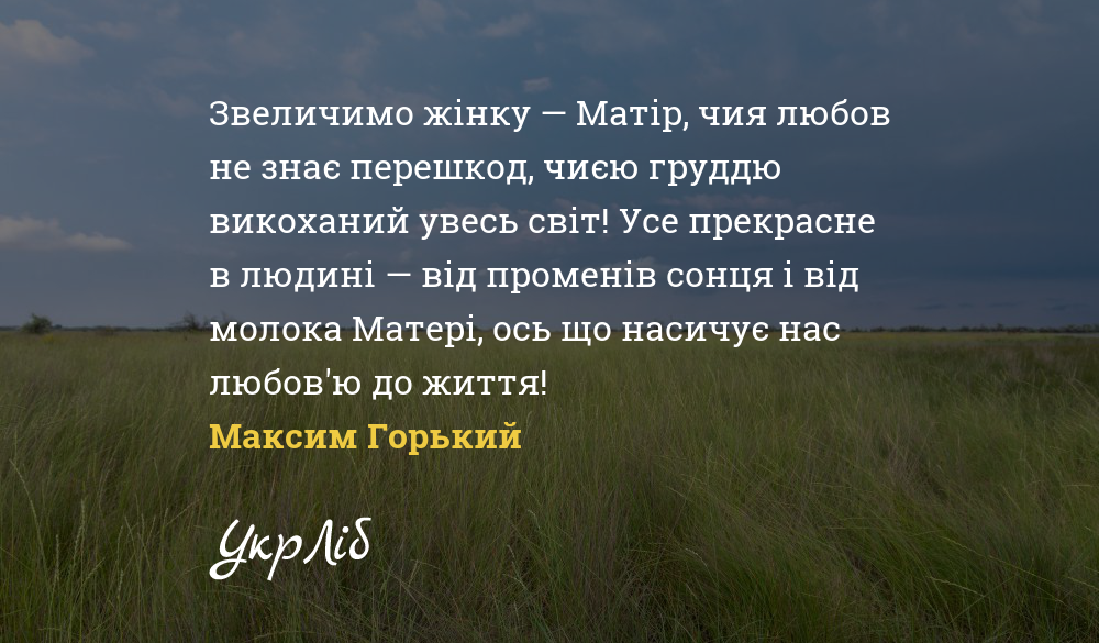Звеличимо жінку — Матір, чия любов не знає перешкод, чиєю груддю викоханий увесь світ! Усе прекрасне в людині — від променів сонця і від молока Матері, ось що насичує нас любов'ю до життя!