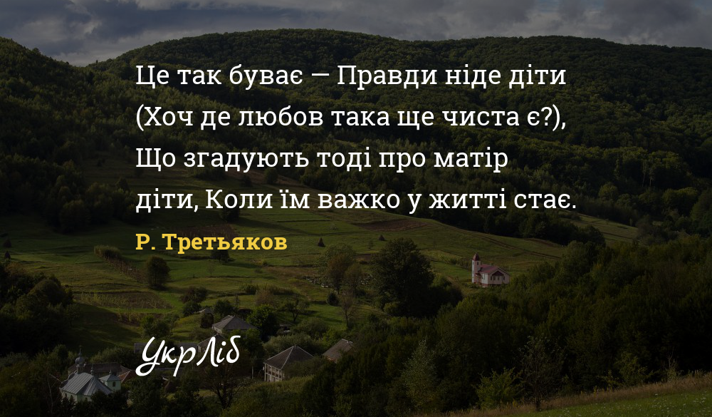 Це так буває — Правди ніде діти (Хоч де любов така ще чиста є?), Що згадують тоді про матір діти, Коли їм важко у житті стає.