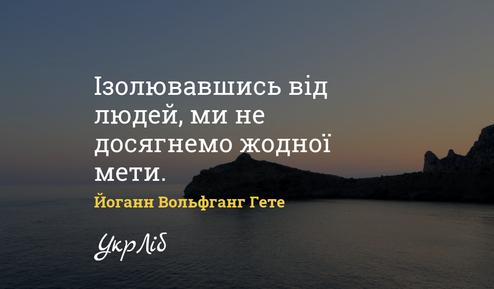 Ізолювавшись від людей, ми не досягнемо жодної мети.