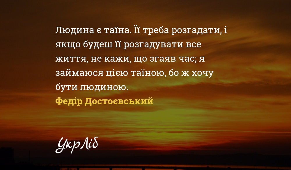 Людина є таїна. Її треба розгадати, і якщо будеш її розгадувати все життя, не кажи, що згаяв час; я займаюся цією таїною, бо ж хочу бути людиною.