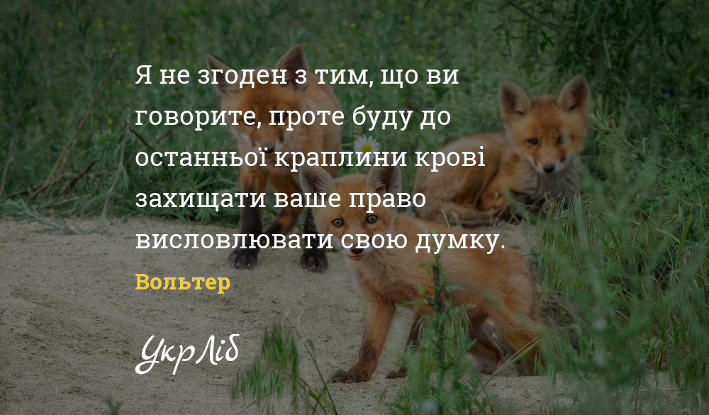 Я не згоден з тим, що ви говорите, проте буду до останньої краплини крові захищати ваше право висловлювати свою думку.