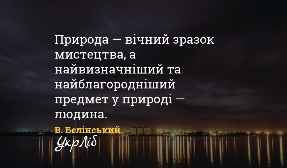 Природа — вічний зразок мистецтва, а найвизначніший та найблагородніший предмет у природі — людина.