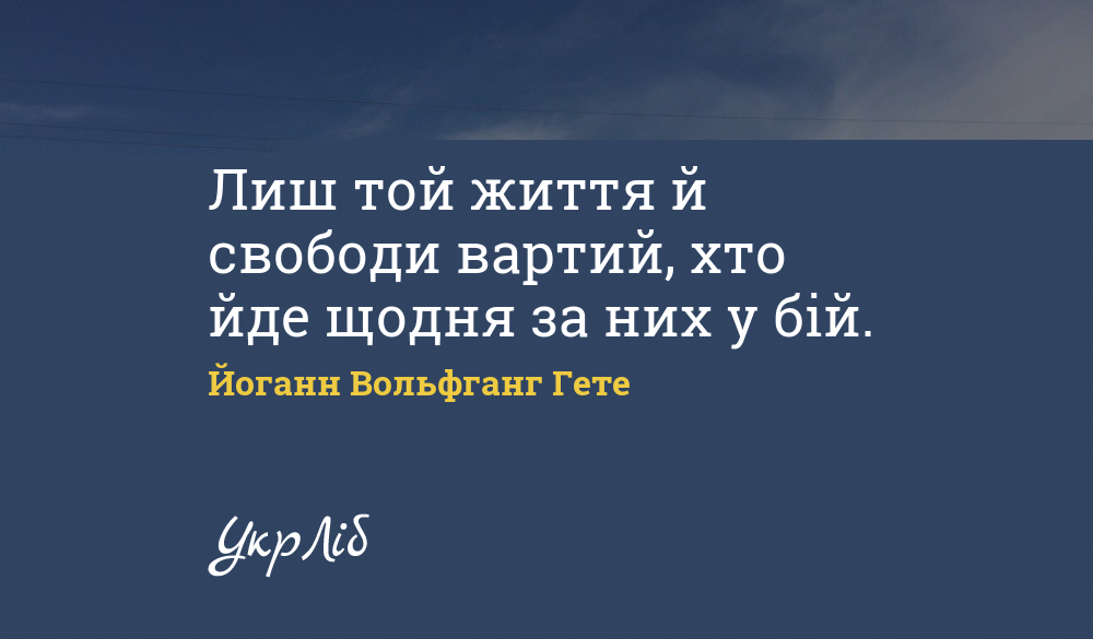 Лиш той життя й свободи вартий, хто йде щодня за них у бій.