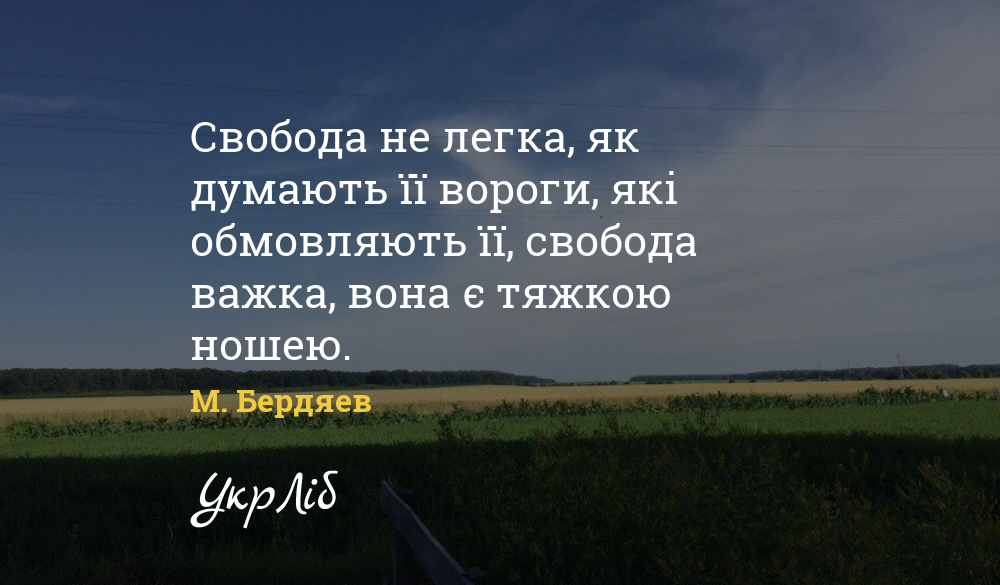 Свобода не легка, як думають її вороги, які обмовляють її, свобода важка, вона є тяжкою ношею.