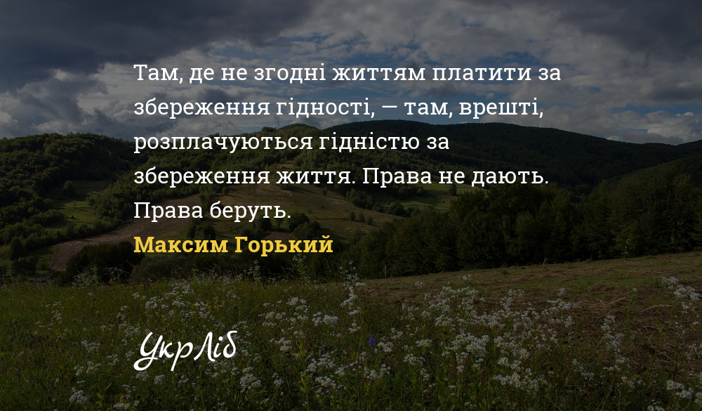 Там, де не згодні життям платити за збереження гідності, — там, врешті, розплачуються гідністю за збереження життя. Права не дають. Права беруть.