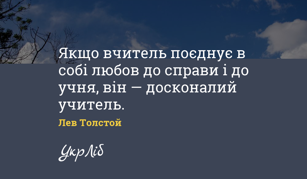 Якщо вчитель поєднує в собі любов до справи і до учня, він — досконалий учитель.