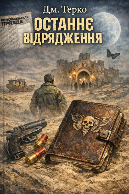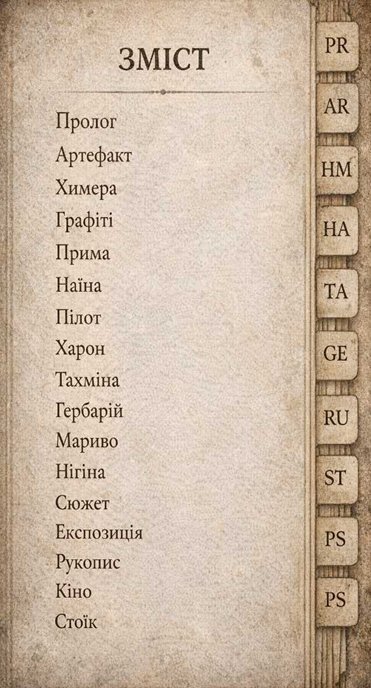 На задублій палітурці якесь невиразне тиснення. Чи час вже спромігся запрасувати чийсь слід? — Ромул вдивляється, нахиляючи артефакт зліва на право, згори до долу. Ось воно: контури гігантського метелика.